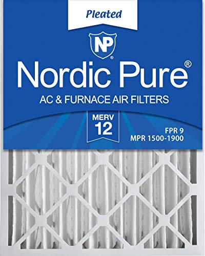 Nordic Pure 16x25x4M12-2 Pleated AC Furnace Air Filters, 2 Pack, 16x25x4, MERV 12, 2 Count