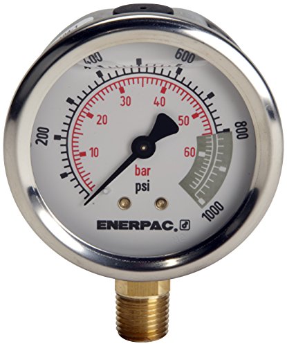 Enerpac G2536L Hydraulic Pressure Gauge, Lower Mount, 2.5" Face, 1/4" NPTF, 0 to 15,000 PSI, 0 to 1,000 bar, Silver