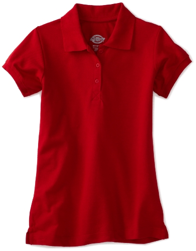 Dickies Big Girls' Short Sleeve Pique Polo Shirt, English Red, Small