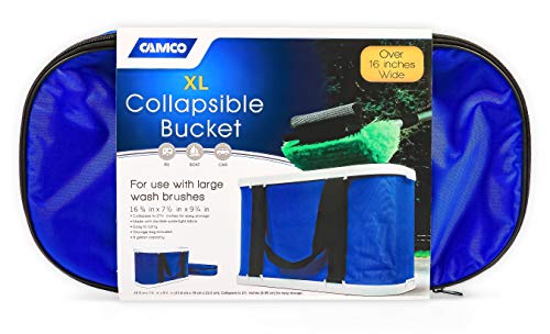 Camco Rectangular Collapsible Wash Bucket with Zippered Storage Case - Ideal For Large Wash Brushes, Perfect For Car, Truck, Boat and RV Washing, Easy Storage After Each Use -Holds 5 Gallons (42973)