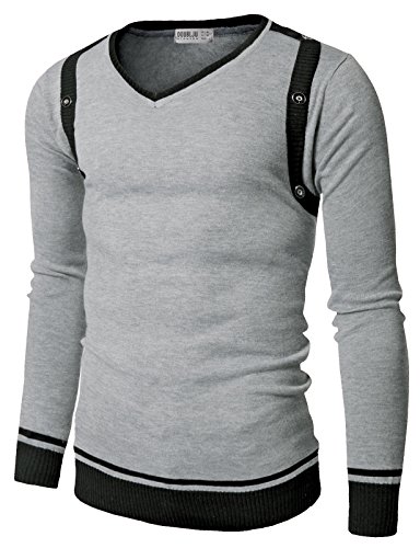Doublju Mens V-Neck Sweater with Contrast Detail GRAY (US-L)
