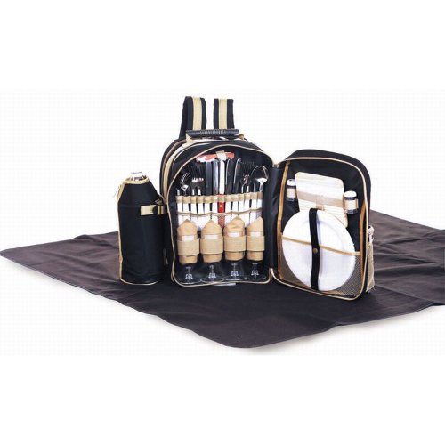 Picnic Plus 4 Person Picnic Complete Backpack 31 pcs with Waterproof Blanket, Thermal Insulated Cooler, 2 Wine Bottle Holders Tremont
