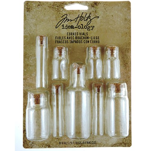 Corked Vials by Tim Holtz Idea-ology, 9 Glass Bottles, Various Sizes, Clear, TH92899