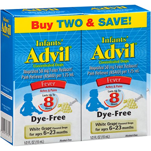 Infants’ Advil Concentrated Drops (.5 fl. oz., White Grape) 50mg Ibuprofen Fever Reducer/Pain Reliever, Dye-Free, Alcohol-Free, Liquid Pain Medicine, Ages 6 – 23 Months (2 Pack)