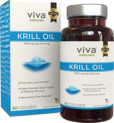 Viva Naturals Premium Antarctic Krill Oil – Omega 3 Supplement with EPA, DHA and Astaxanthin, 1250 mg/Serving, 60 Capsules