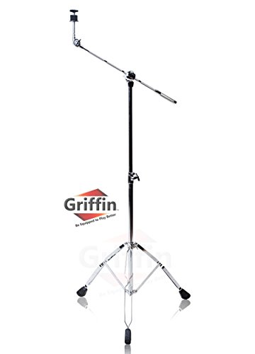 Cymbal Boom Stand by Griffin|Double Braced Drum Percussion Gear Hardware Set|Adjustable Height|Arm Holder With Counterweight Adapter for Mounting Heavy Duty Weight Crash and Ride Cymbals For Drummers