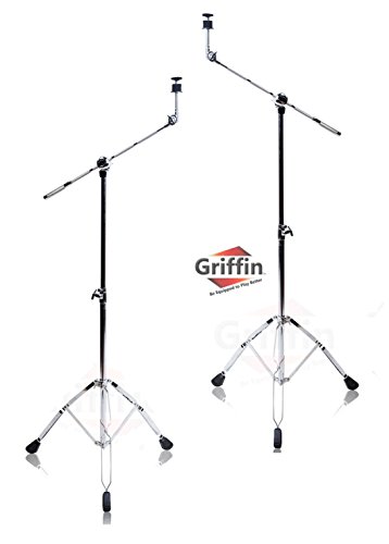Cymbal Stand With Boom Arm by Griffin (Pack of 2)|Drum Percussion Gear Hardware Set with Double Braced Legs|Counterweight Adapter for Mounting Heavy Duty Crash, Ride, and Splash Cymbals For Drummers