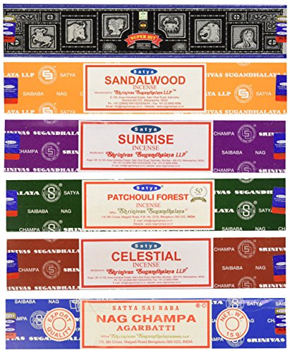 Set of 6 Nag Champa Sunrise Sandalwood Patchouli Celestial Super Hit by Satya