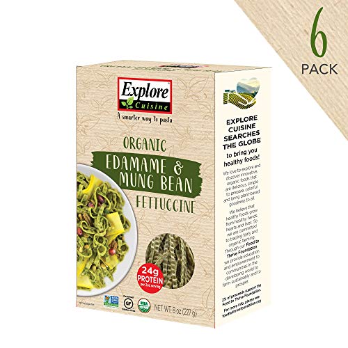 Explore Cuisine Organic Edamame & Mung Bean Fettuccine (6 Pack) - 8 oz - High Protein, Gluten Free Pasta - USDA Certified Organic, Vegan, Kosher, Non GMO - 24 Total Servings