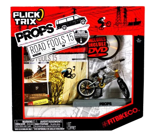 Spinmaster Flick Trix Fingerbike "Real Bikes, Unreal Tricks" BMX Bicycle Miniature Set - FITBIKE CO. with Display Base and DVD Props "Road Fools 15"