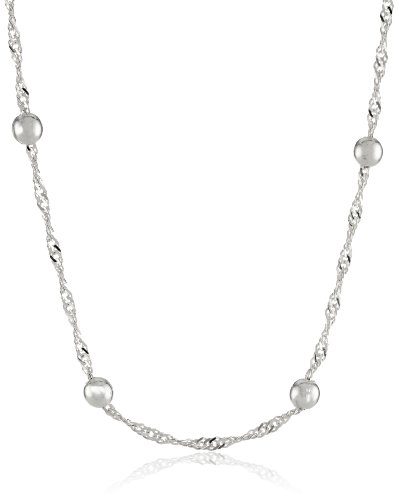 Sterling Silver Singapore with 4mm Bead Stations Chain Necklace