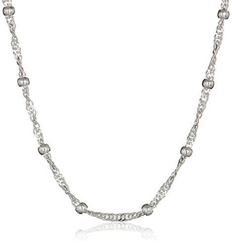 Amazon Essentials Sterling Silver Singapore Bead Chain Station Necklace