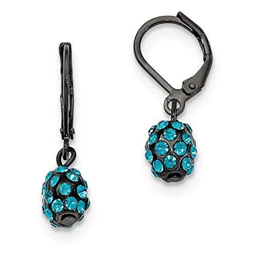 Black Plating Black-plated Teal Crystal Fireball Leverback Earrings