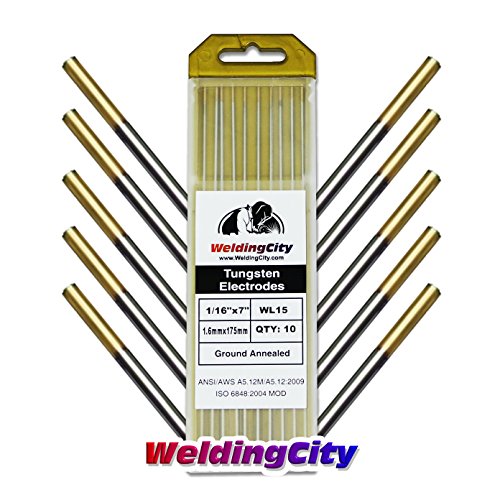 WeldingCity 10-pcs Premium TIG Welding Tungsten Electrode Rod 1.5% Lanthanated (Gold/AWS: EWLa15) 1/16" x 7" | 10-pk