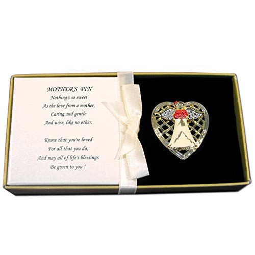 BANBERRY DESIGNS Mom Angel Pin - Angel Holding Roses Framed with a Filigree Heart