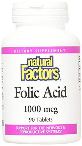 Natural Factors Folic Acid, 90 Tab 1000mcg (Pack of 4)