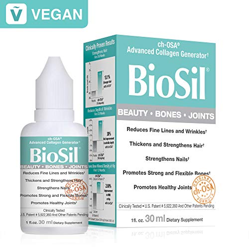 BioSil by Natural Factors, Beauty, Bones, Joints Liquid, Supports Healthy Hair, Skin and Nails, Vegan Collagen, Elastin and Keratin Generator, 1 Fl Oz (120 servings)