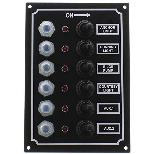 SeaSense LED Switch Panel 6 Gang with Breaker and Rubber Boots