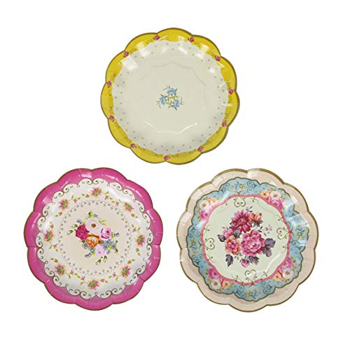 Talking Tables Tea Party Vintage Floral Paper Plates | Truly Scrumptious | Also Great For Birthday Party, Baby Shower, Wedding And Anniversary | 12 Count
