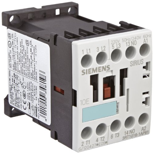 Siemens 3RT10 16-1AP61 Motor Contactor, 3 Poles, Screw Terminals, S00 Frame Size, 1 NO Auxiliary Contact, 240V at 60Hz and 220V at 50Hz AC Coil Voltage Voltage