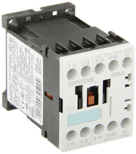 Siemens 3RT10 17-1AK61 Motor Contactor, 3 Poles, Screw Terminals, S00 Frame Size, 1 NO Auxiliary Contact, 120V at 60Hz and 110V at 50Hz AC Coil Voltage Voltage
