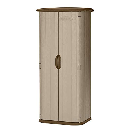 Suncast Vertical Utility Shed - Outdoor Storage Shed for Backyards and Patios - Storage and Shelving for Garden Tools and Accessories - Wood Grain Texture