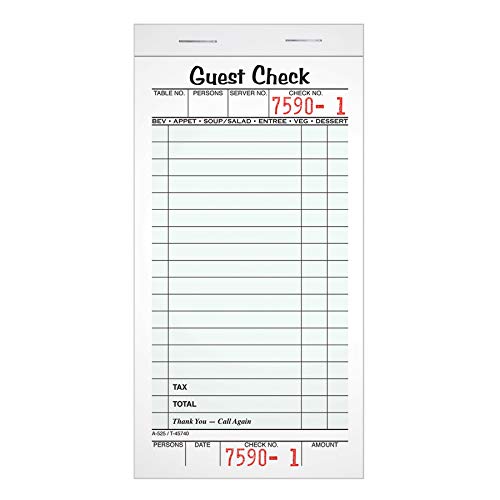 Adams Guest Check Pads, Single Part, Perforated Guest Receipt, 8.6 x 17.2 cm, 50 Sheets per Pad, 10 Pack (525SW)