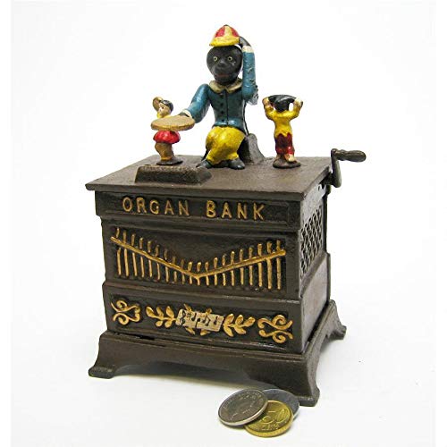 Design Toscano Monkey Organ Grinder Collectors' Die Cast Iron Mechanical Coin Bank