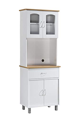 Hodedah Long Standing Kitchen Cabinet with Top & Bottom Enclosed Cabinet Space, One Drawer, Large Open Space for Microwave, White