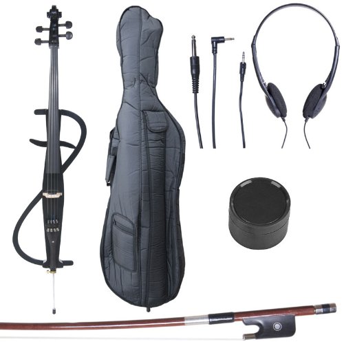 Cecilio 4/4 CECO-3BK Black Metallic Electric Cello with Ebony Fittings in Style 3 (Full Size)