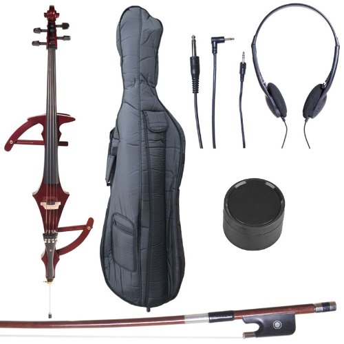 Cecilio 4/4 CECO-4DW Mahogany Metallic Electric Cello with Ebony Fittings in Style 4 (Full Size)