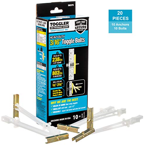 TOGGLER SNAPTOGGLE BA Toggle Anchor with Bolts, Zinc-Plated Steel Channel, Made in US, 3/8" to 3-5/8" Grip Range, For 3/16"-24 UNC Fastener Size (Pack of 10)