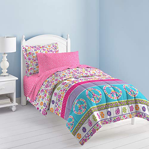 Dream Factory Peace And Love Peace Signs Girls Comforter Set, Multi-Colored, Twin