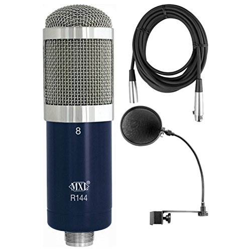 MXL R144 Studio Ribbon Microphone + Pop Filter + XLR Cable Bundle