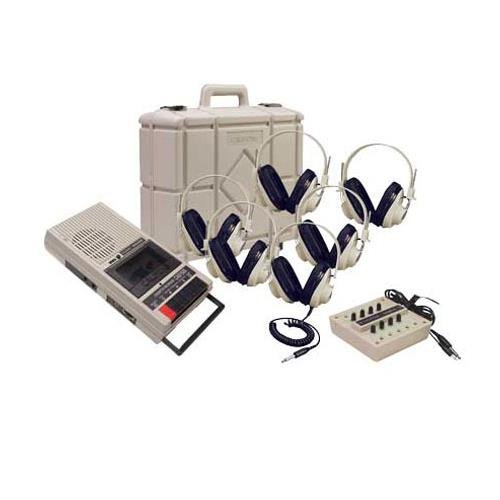 Califone CAS1500PLC 6-Person Cassette Learning Center (1x CAS1500 Cassette Player/Recorder, 6X 2924AVP Headphones, 1x 1218AVPY Jackbox) with Rugged case for Transportation or Storage