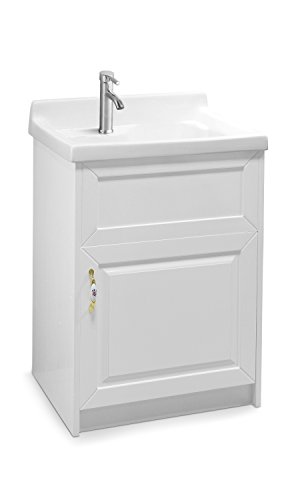 sink ALEXANDER 24" WHITE Utility Sink - Modern Mop Slop Tub Deep Sink Ceramic Laundry Room Vanity Cabinet Contemporary Hardwood Hard