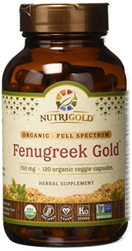Organic Fenugreek Gold - 750 mg, 120 Organic Veggie Capsules (GMO-Free, Preservative-Free, Allergen-Free Organic Fenugreek Seed Powder in Organic Capsules for Breastfeeding)