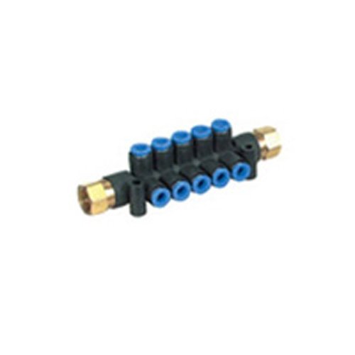 SMC KM12-06-02-6 PBT Push-To-Connect Tubing Manifold, 2 Inlets-Rc(PT) 1/4 Female, 6 Outlets-6 mm Tube OD