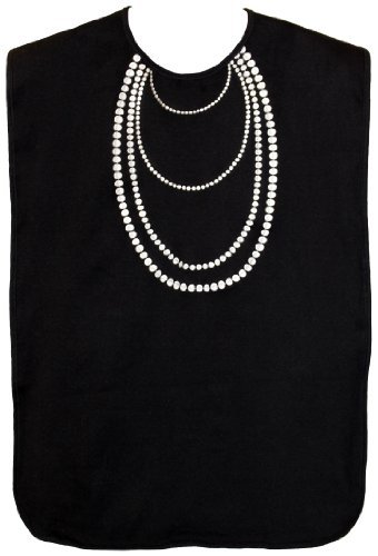 Ladies Waterproof Adult Bib, Black with White Pearl Embroidery, Frenchie Mini Couture