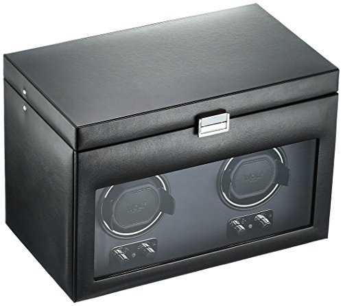 WOLF 270402 Heritage Double Watch Winder with Cover and Storage, Black