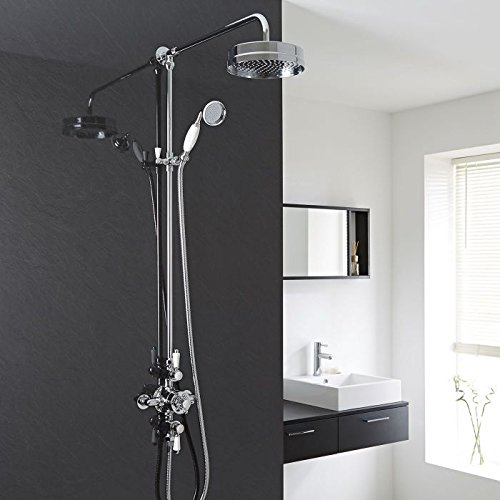 Hudson Reed Thermostatic Shower System with Triple Exposed Valve, Round Showerhead, Rigid Riser and Handheld Sprayer In Chrome Finish