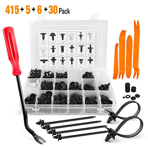 GOOACC 10296409 415Pcs Bumper Car Retainer Clips & Plastic Kit-19 Most Popular Sizes, 5Pcs Fastener Remover, 6Pcs Reusable Cable Ties and 30Pcs Sponge Cushion