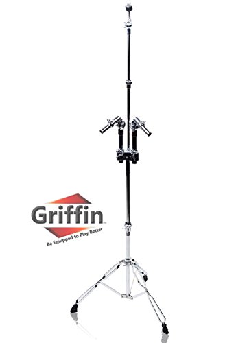 Double Tom Drum Stand with Cymbal Arm by Griffin | Premium Percussion Set Hardware with Dual Drum Mounts|Medium Duty Tom Holder with Double Braced Tripod Legs|Accommodates All Standard Cymbals