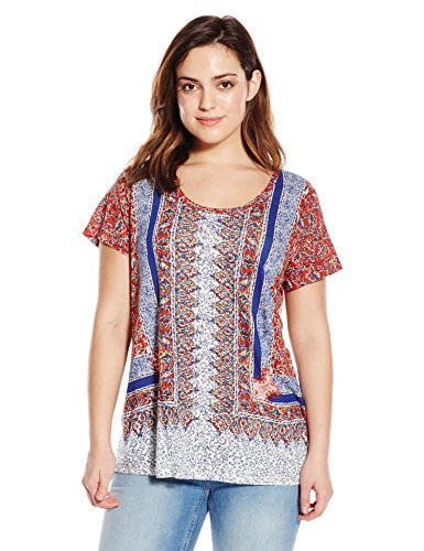 Lucky Brand Women's Plus Size Scarf Print T-Shirt, Multi, 1X