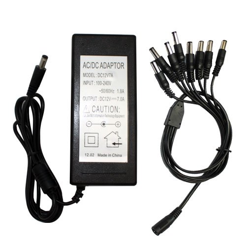 GW Security 12 Volt DC 7 Amp CCTV Surveillance Video Power Adapter (12V 7A) + (1 to 8 Power Splitter) for Security Camera Power Supply