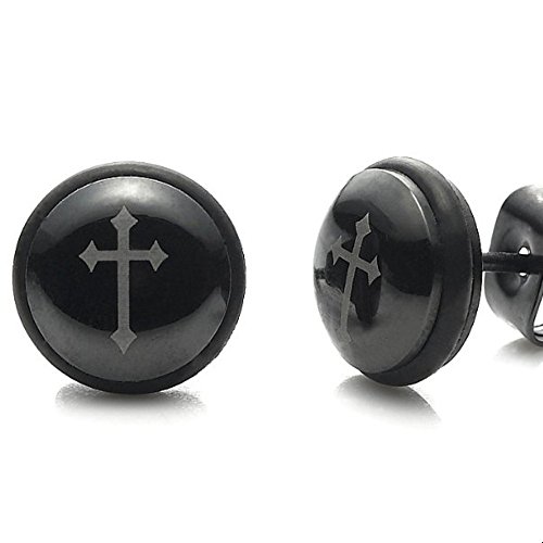 Beautiful Mens Jewelry Stainless Steel Black Cross Stud Earrings