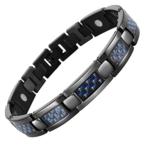 Willis Judd Mens Blue Carbon Fiber Titanium Magnetic Bracelet Adjustable
