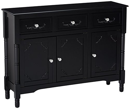 King's Brand R1121 Wood Console Sideboard Table with Drawers and Storage, Black Finish