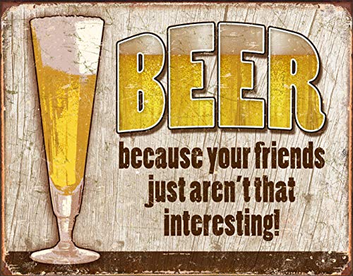 Desperate Enterprises Beer - Because Your Friends aren't That Interesting Tin Sign, 16" W x 12.5" H
