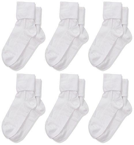 Jefferies Socks Little Girls' Seamless Turn Cuff Socks (Pack of 6), White, Toddler